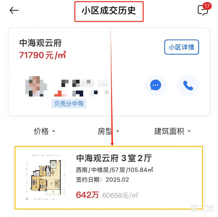 再说了,中海观雲府上次成交的一套106㎡同户型,成交价比你的低一些,只要6万/㎡!