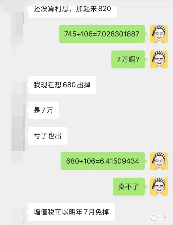 他说,高位入手的,合同价745万,单价7.02万/㎡买的,如果算上这几年还的利息,其实已经有820万了!